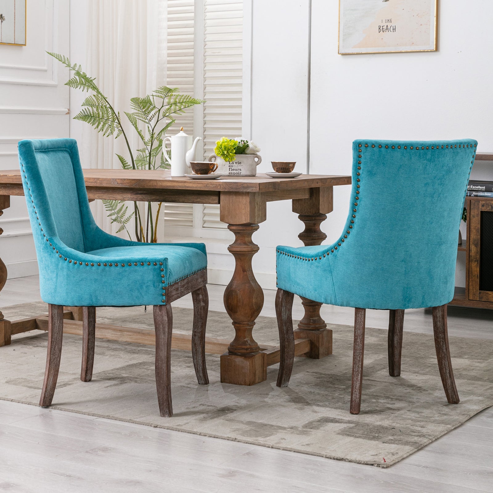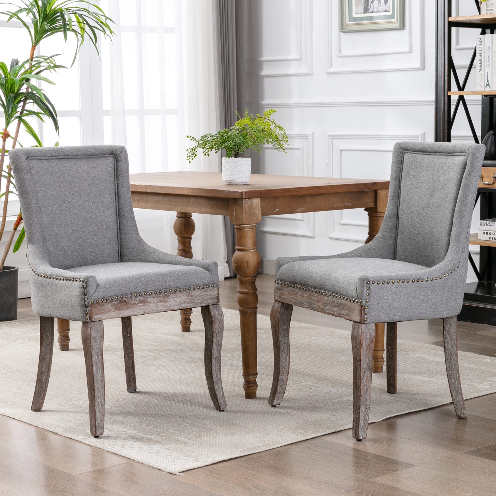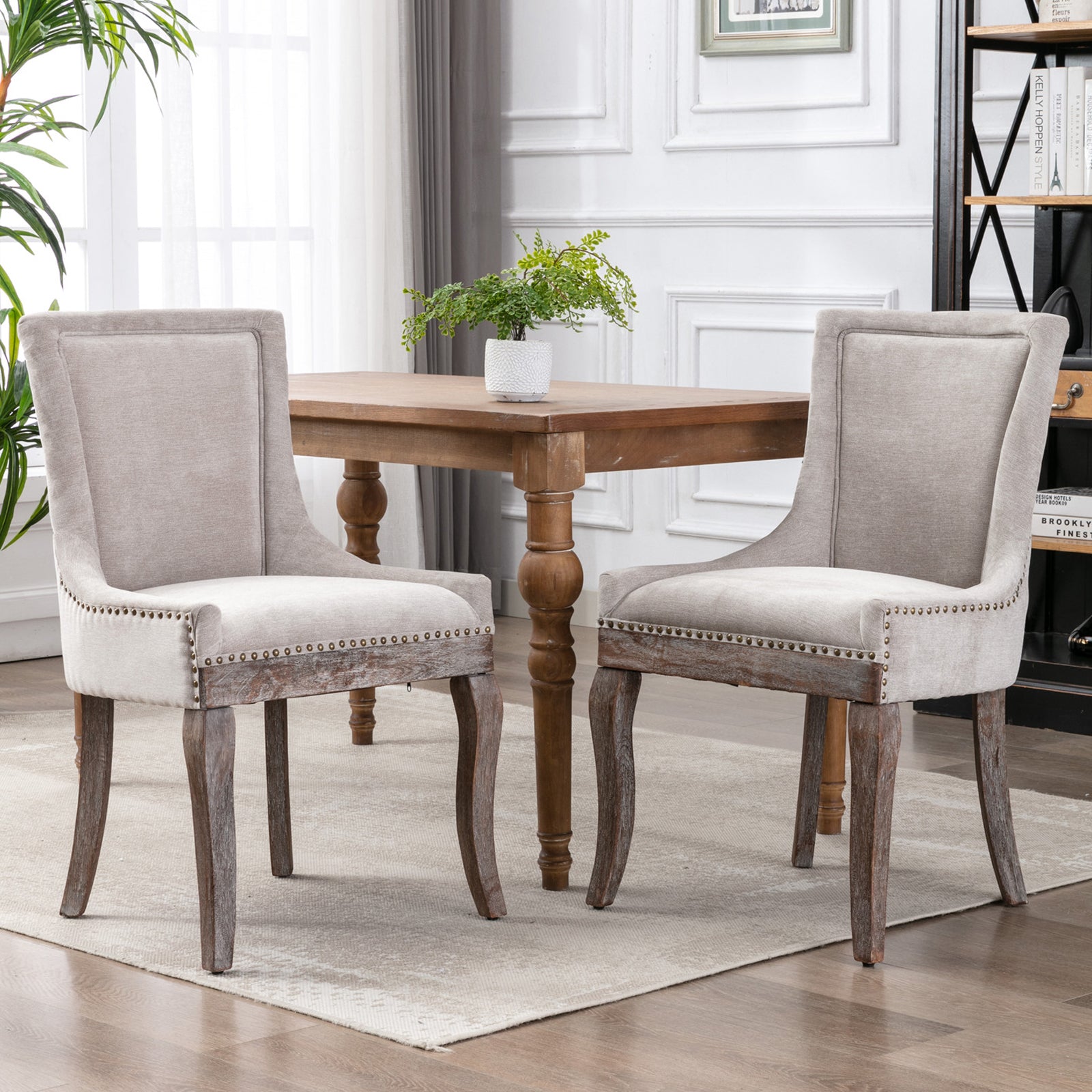 UWR-Nite Fabric Upholstered Side Chairs Set of 2, Solid Wood Kitchen Dining Room Chairs with Nailheads Solid Wood Legs.
