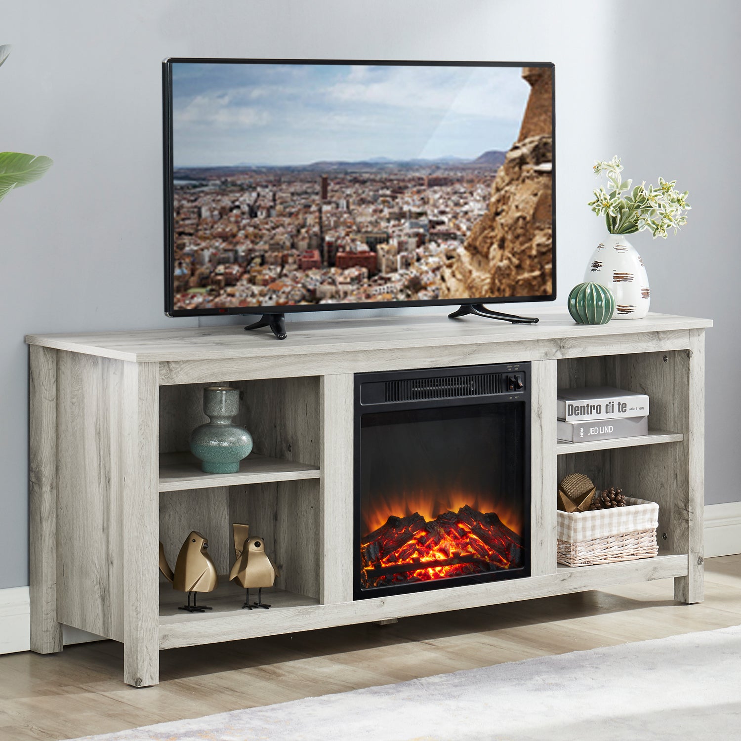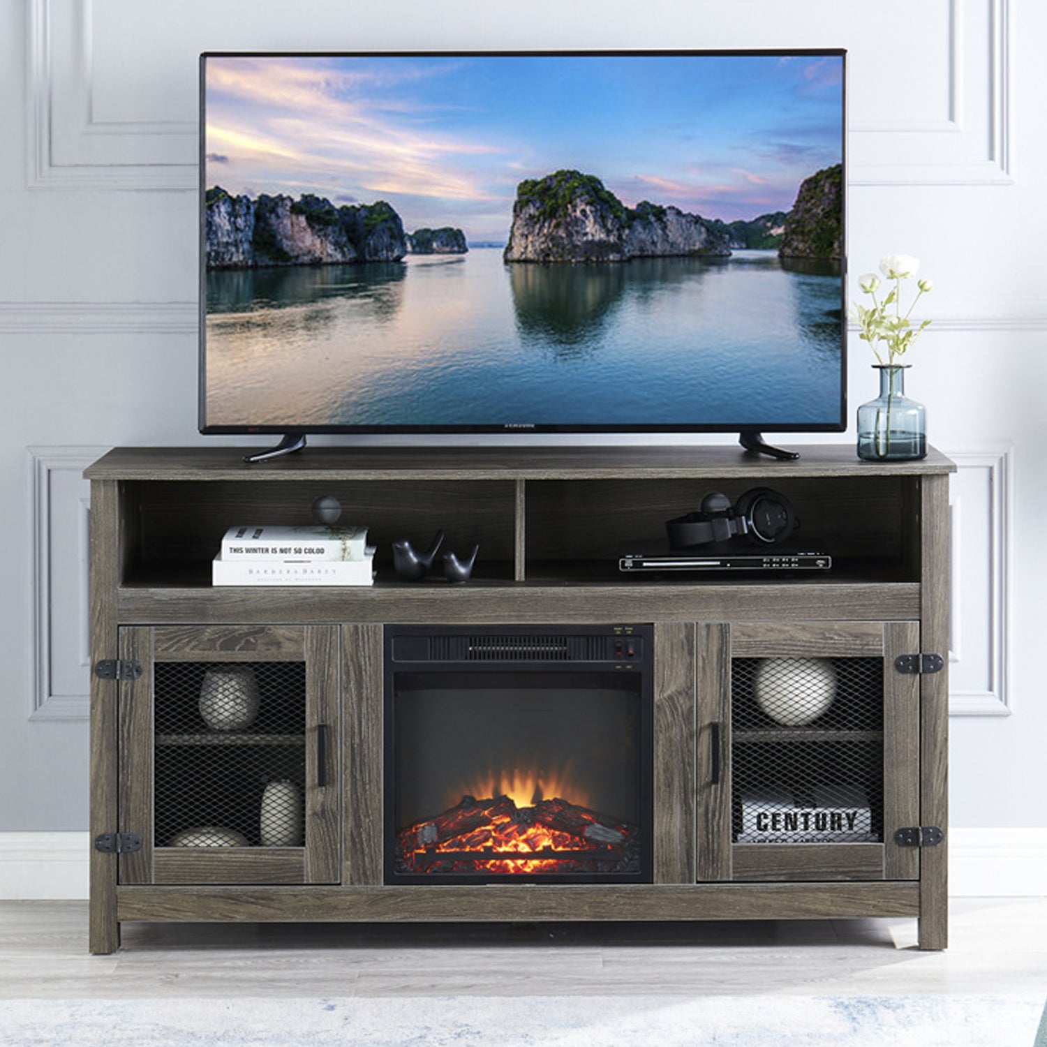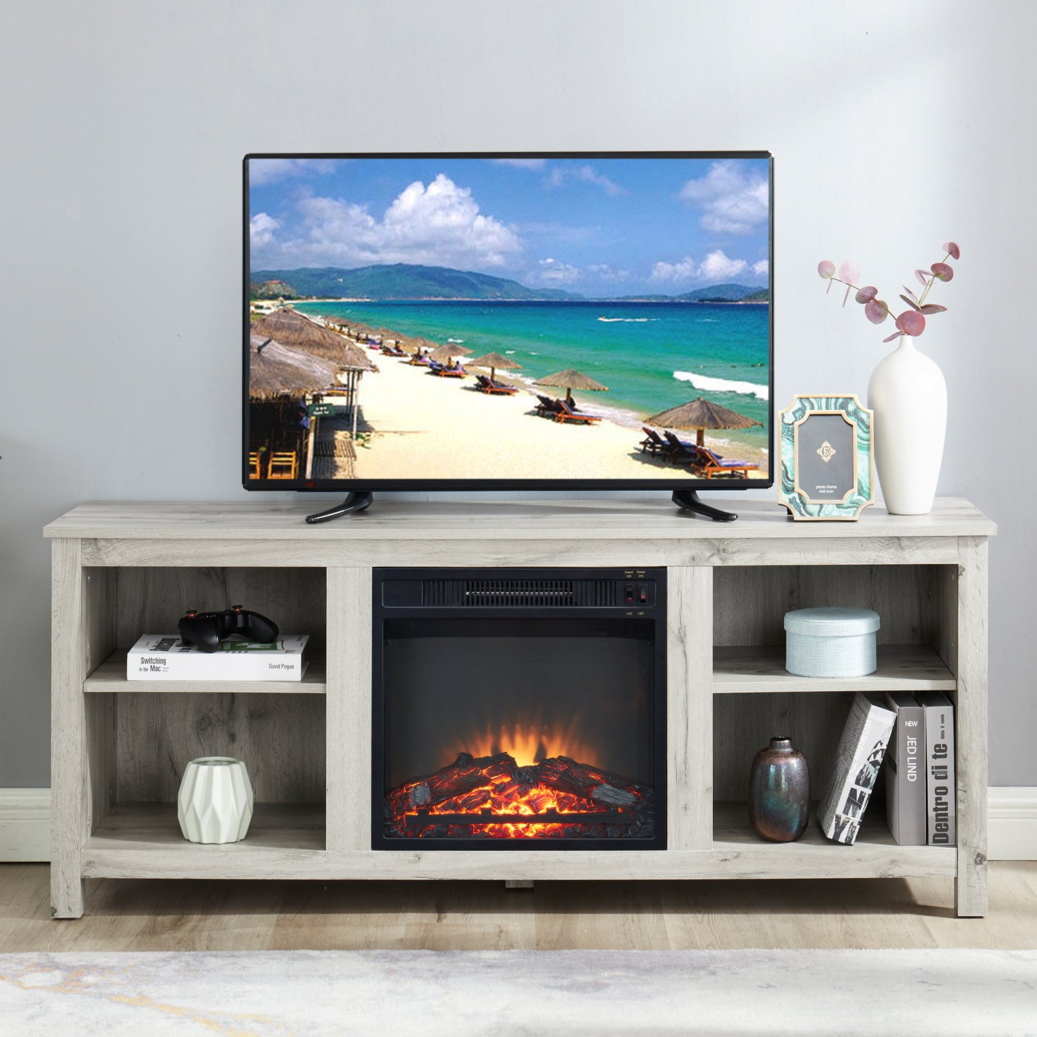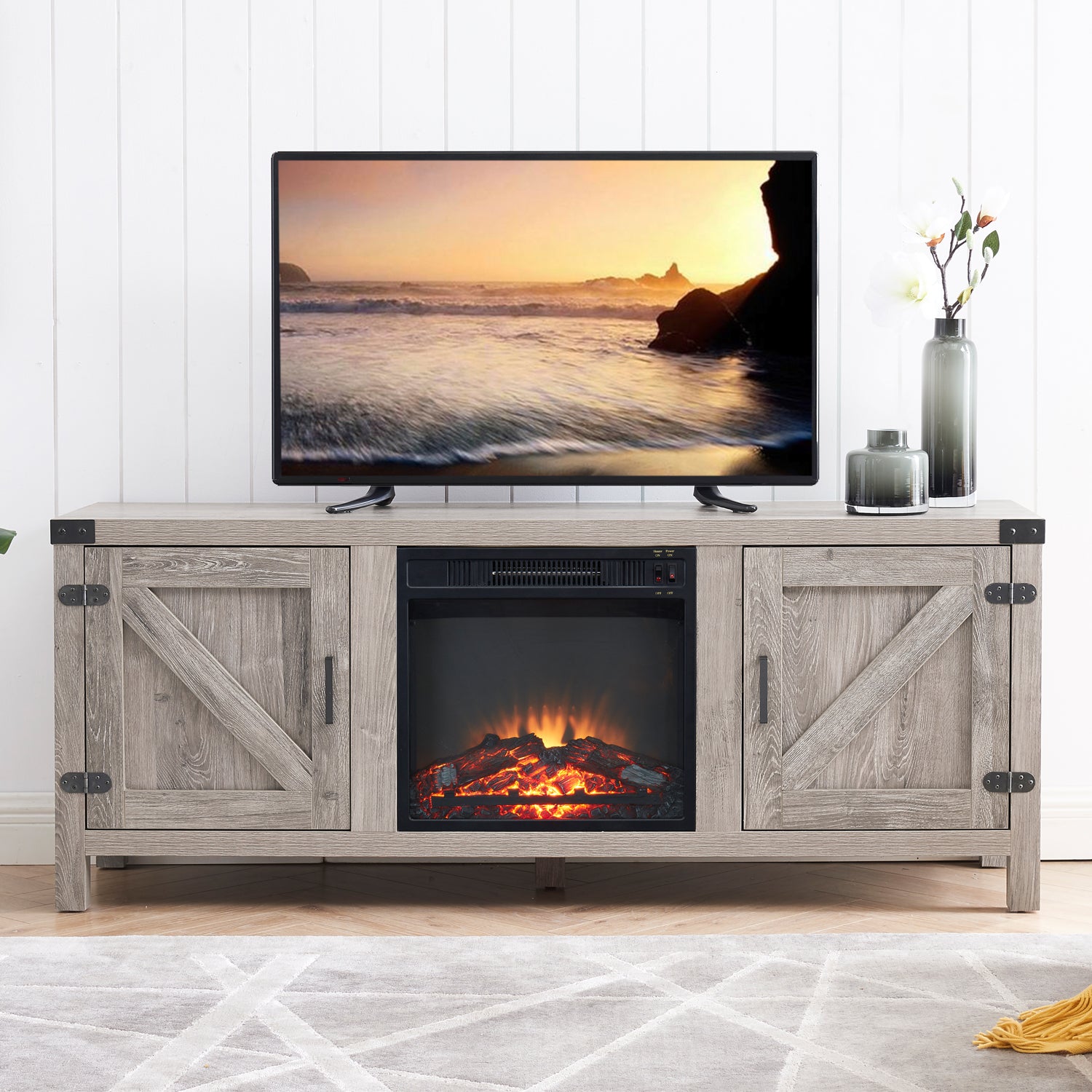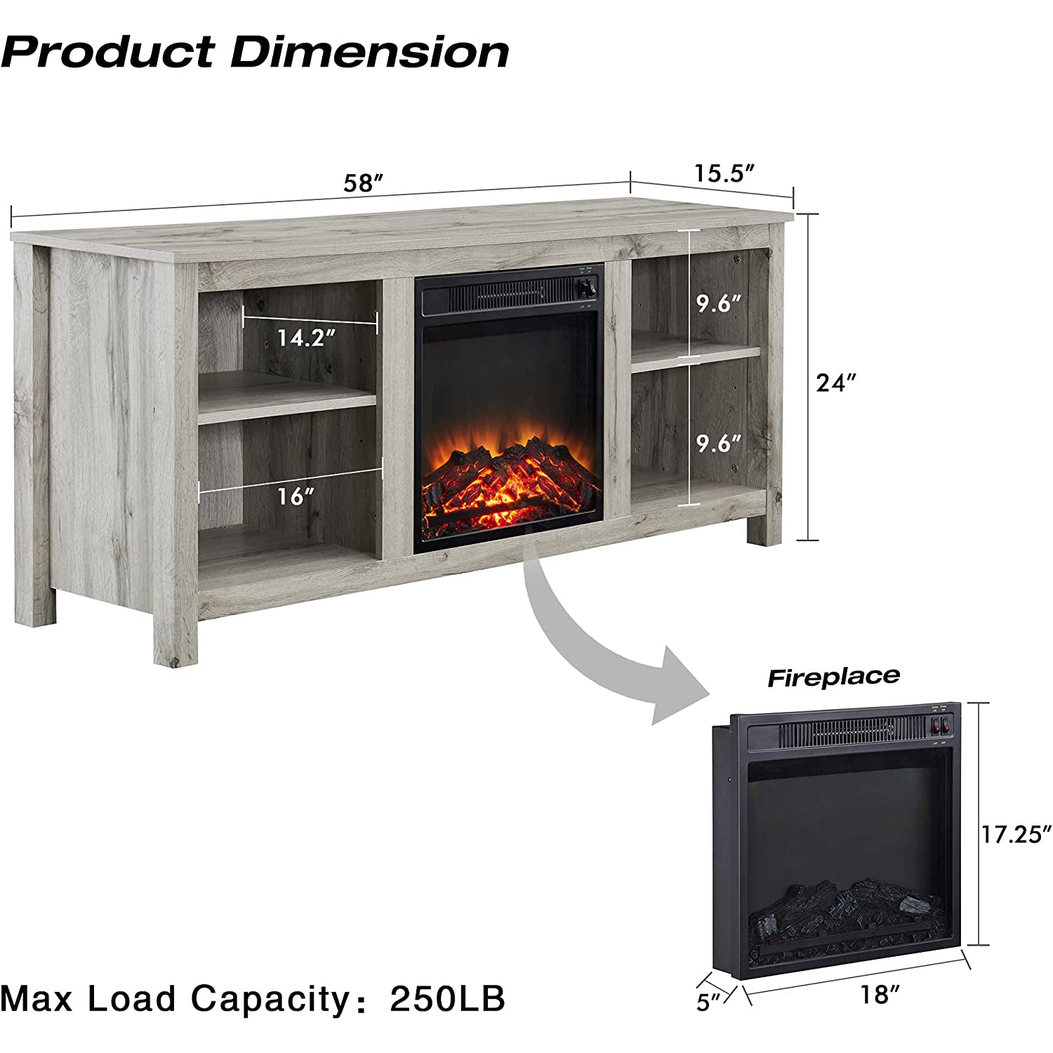 UWR-Nite Farmhouse Electric Fireplace TV Stand for TV's Up to 65" Media Entertainment Center Console with Insert Fireplace and Adjustable Shelves, Storage Cabinet Chest for Living Room.