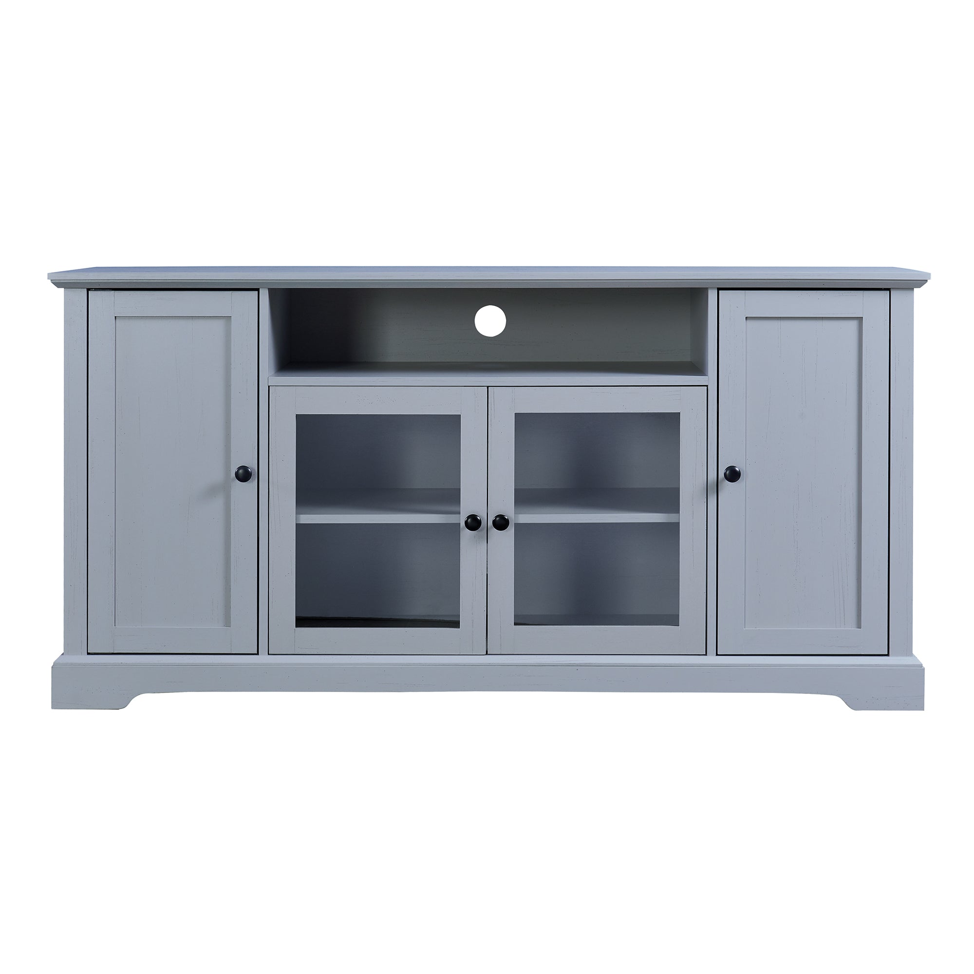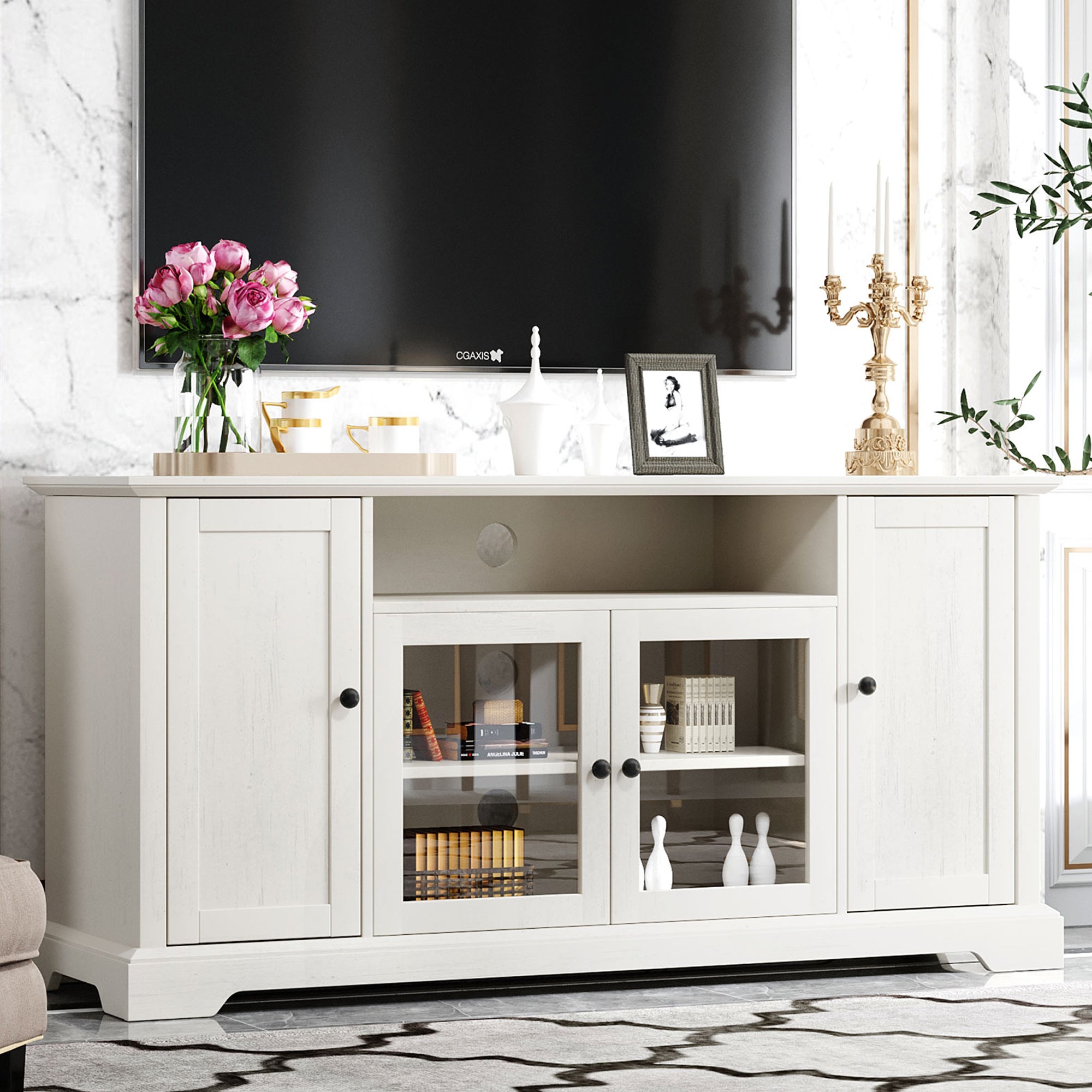 UWR-Nite Farmhouse Entertainment Center TV Stand for 65 Inch Televisions, Wooden Console Storage Cabinet Sideboard with Adjustable Shelves & Tempered Glass Doors