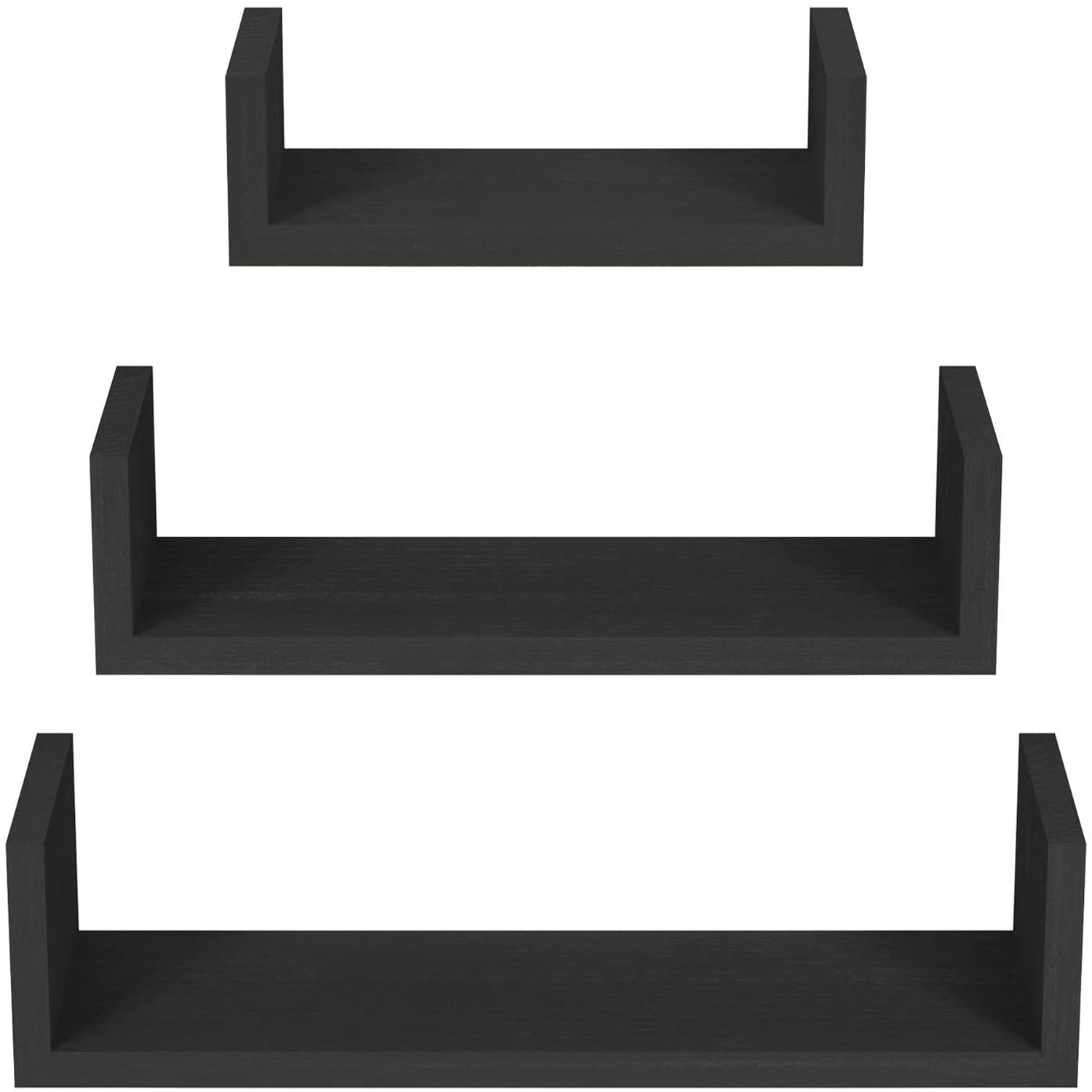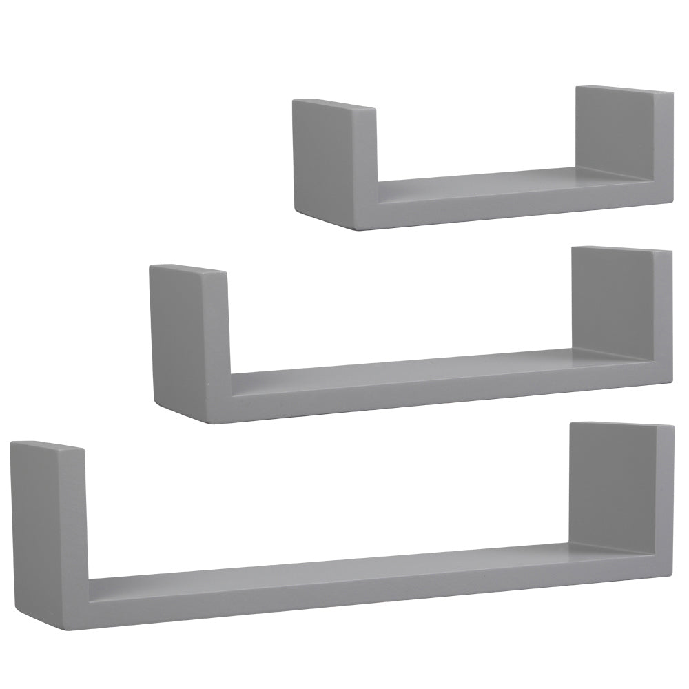 This set of 3 Nesting ""U"" Shelves makes space utilization efficient & is perfect for displaying your favorite books, collectibles, photos, toys, awards, CD's, videos, decorative items and more. They can be hung with the vertical sides either up or down, according to the effect you want to create. With the vertical sides up, it is like having a built in bookend.