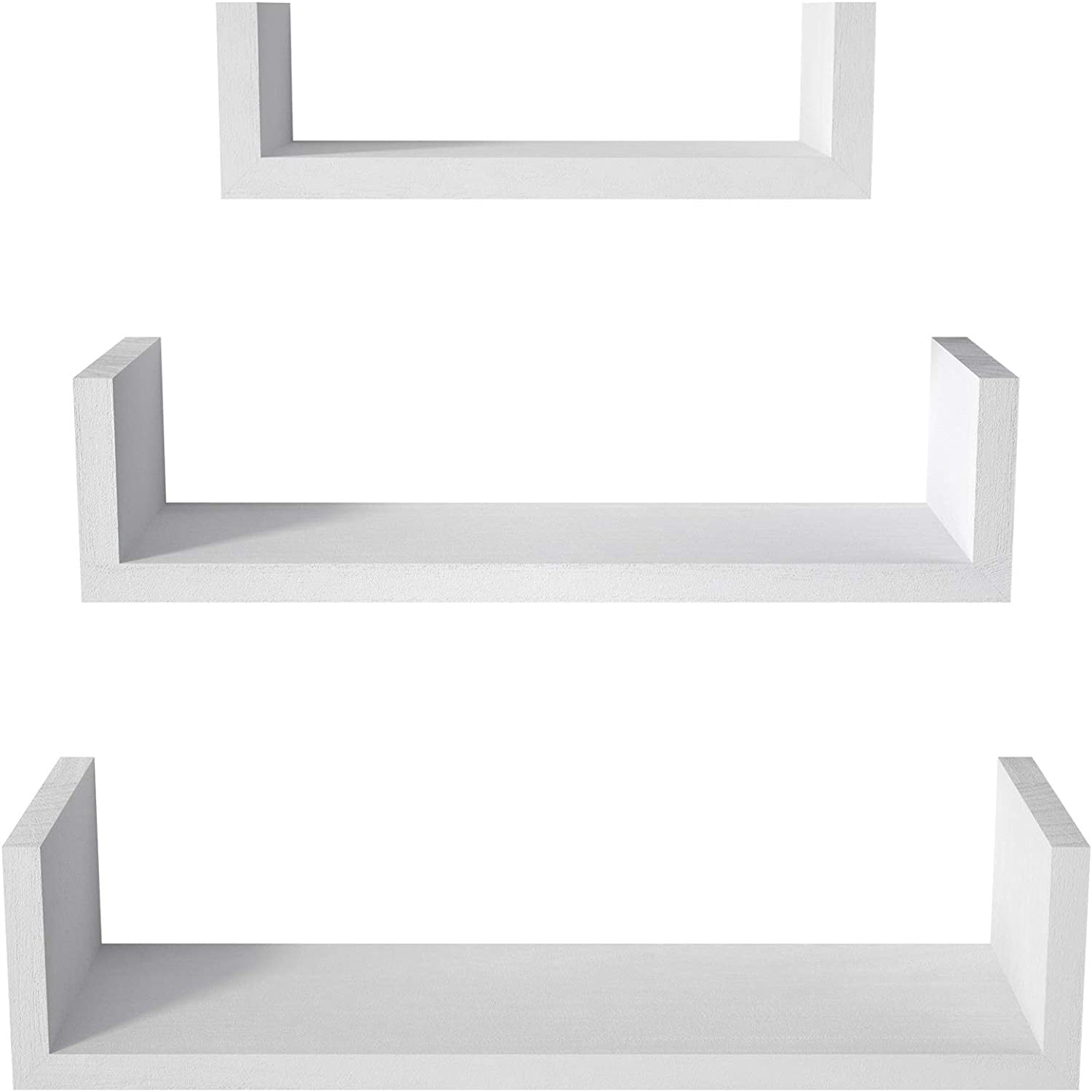 - Classic & Rustic Floating Shelves: The U-shape shelves featuring white finish will be a perfect compliment to your bedroom, kitchen, living room, office or more.