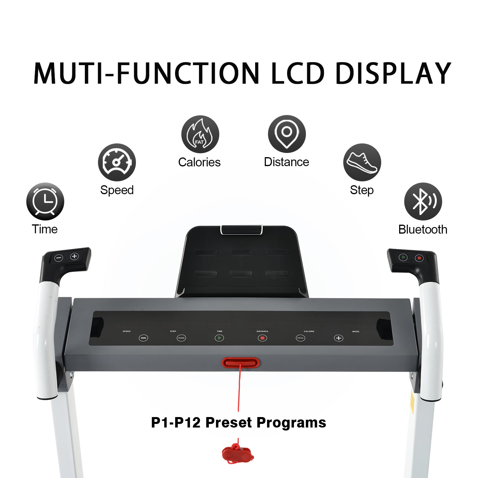 - Bluetooth Speaker & Phone Holder: By connecting your electronic device to the treadmill via Bluetooth, you can enjoy music while exercising. In addition, there is a phone holder on the display for you to put your phone on and watch your favorite TV series or movies.