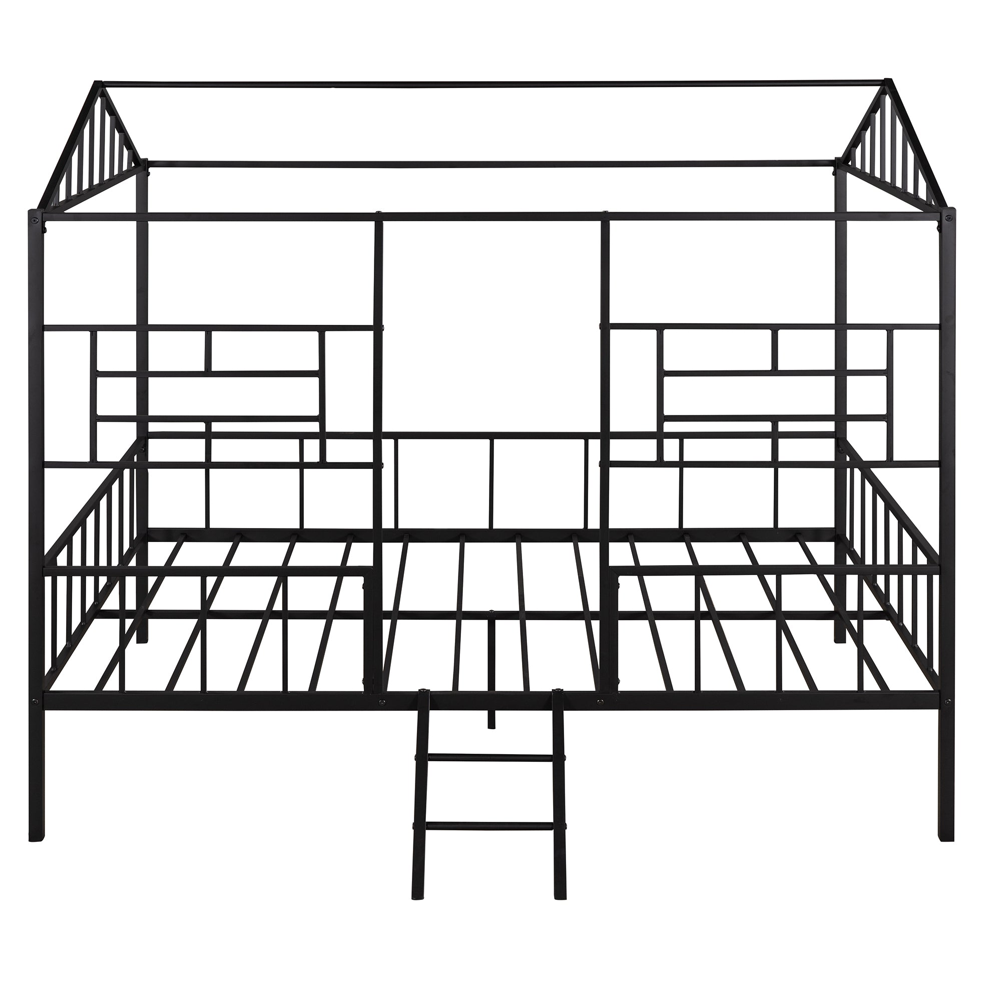UWR-Nite Full House Bed with Fence Railings Metal Cabin Bed Frame with Ladder Child Fun Tent Beds for Toddler Kids Boys Girls Teens, Full Size.