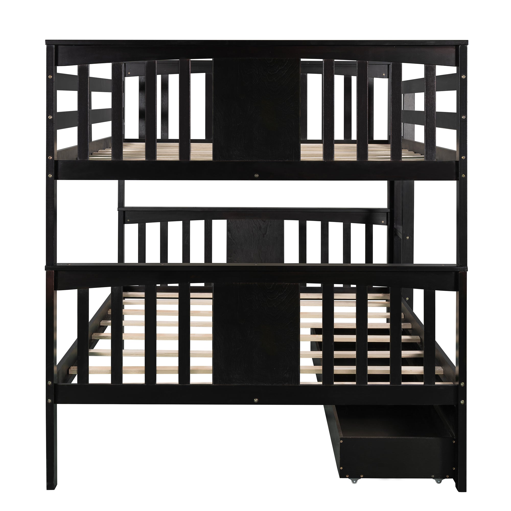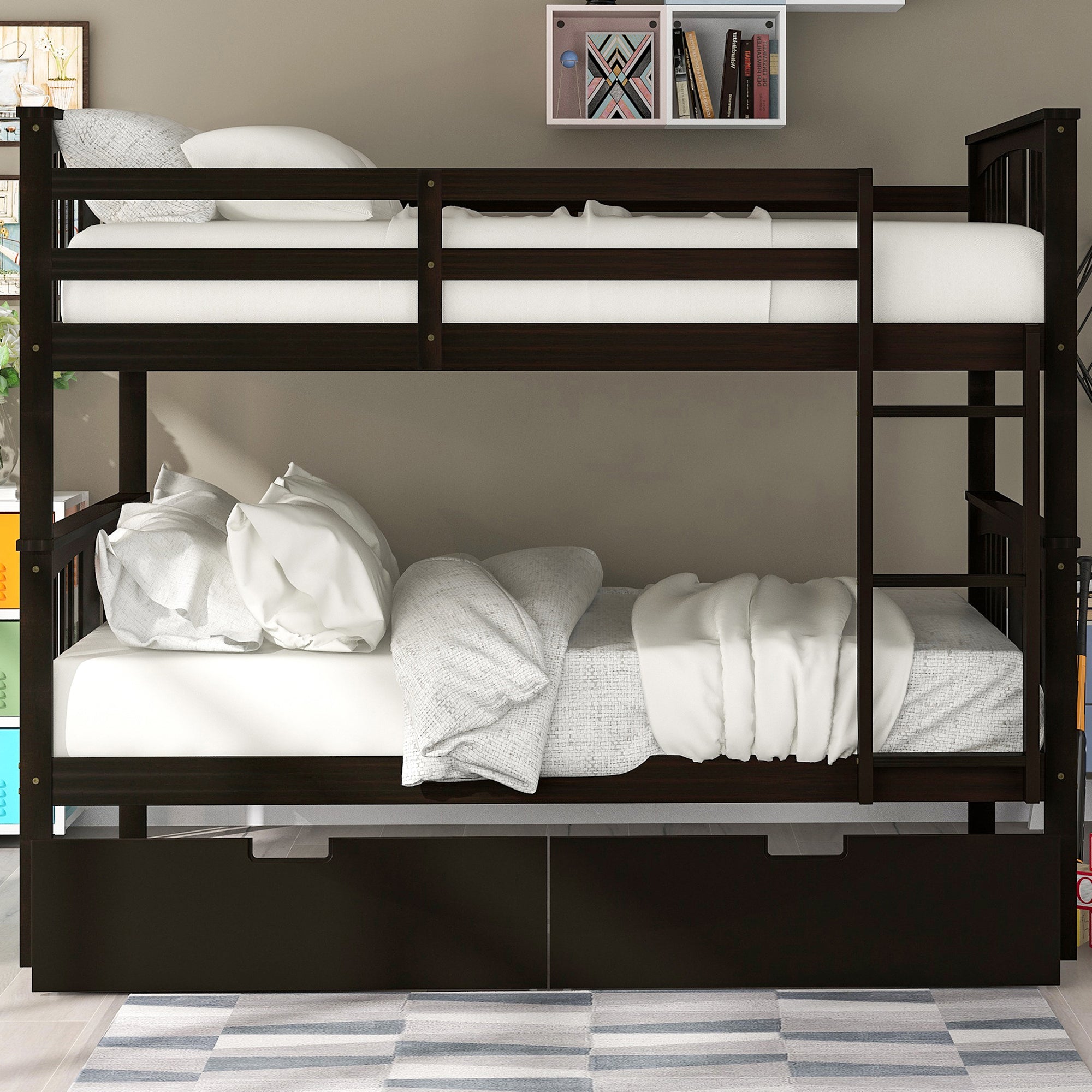- [Versatility galore] This bunk bed features one full size upper bed, one full size bottom bed and a pair of drawers for accommodating you or overnight sleepers. It can also be divided into two individual beds for even more convenience, depending on how you want to organize your space. No spring box needed.