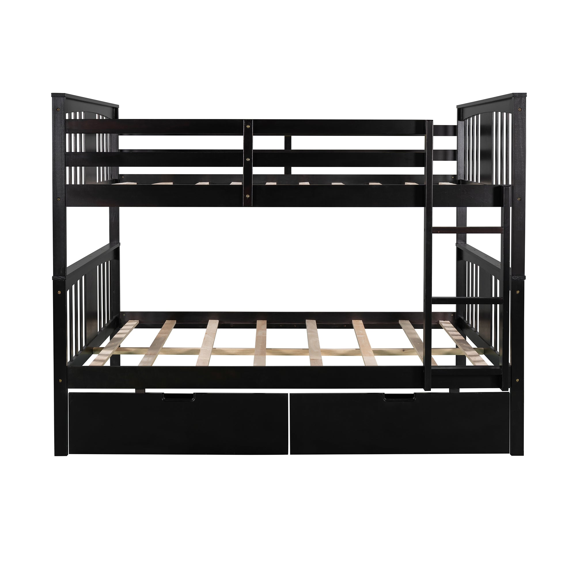 If you need extra sleeping space or you love sleepovers, this Full-Over-Full Bunk Bed with Drawers is perfect for your home. A pair of drawers under the bottom bed provide ample storage for your toys and bedding. High-quality, solid pine legs and a strong, durable frame ensures stability and durability for long-term use and can be separated into two full beds. Slat kit included so box springs are not required. This bunk bed is designed with a clean silhouette and a hue of elegance. It suits all styles of home decoration and completes the look of any bedroom.