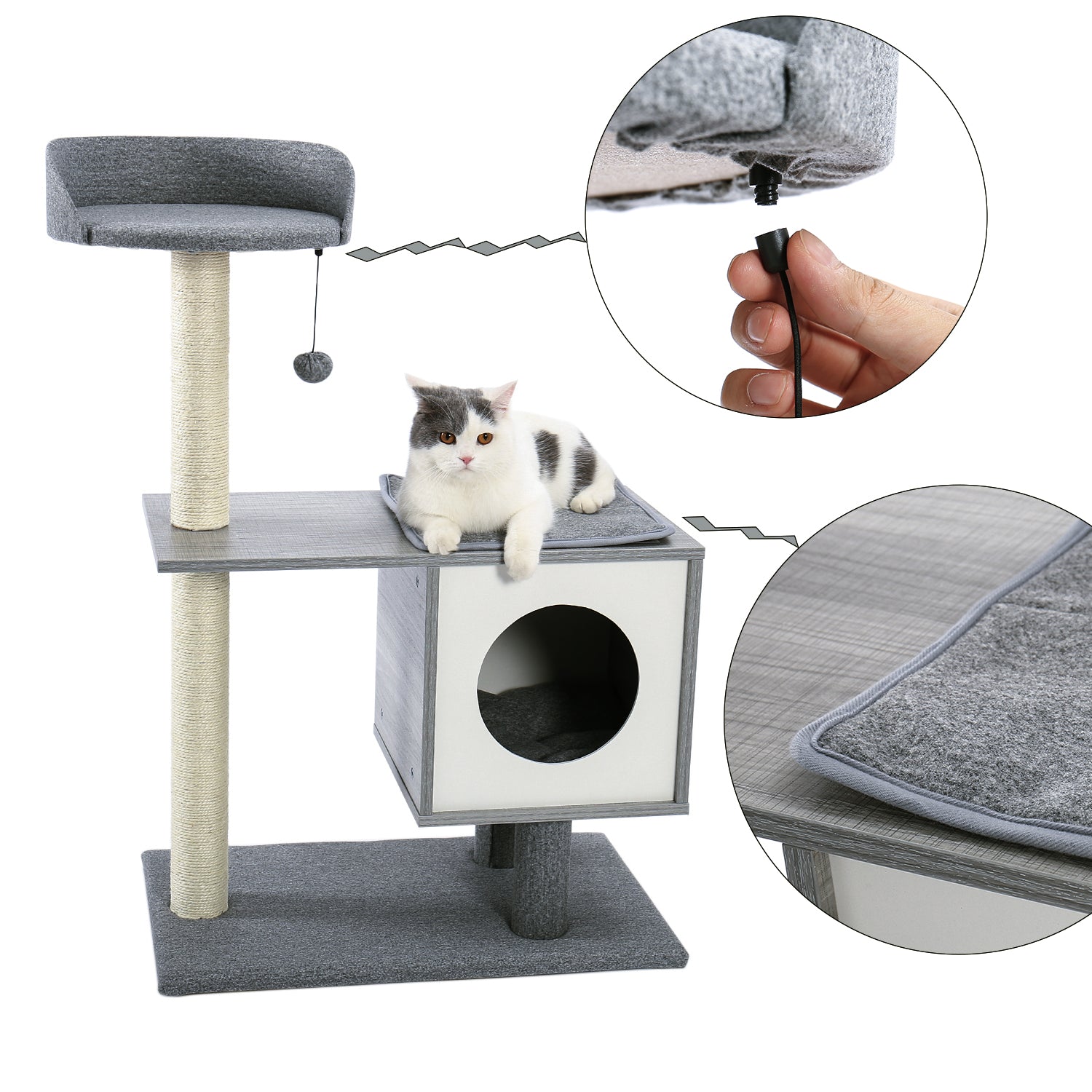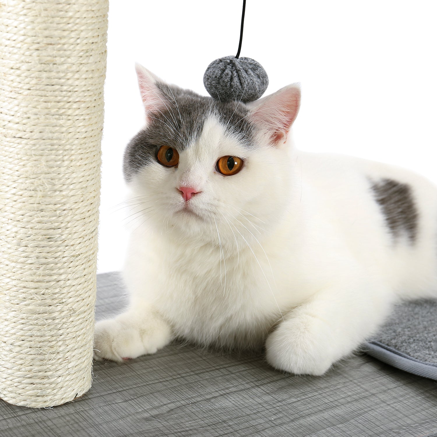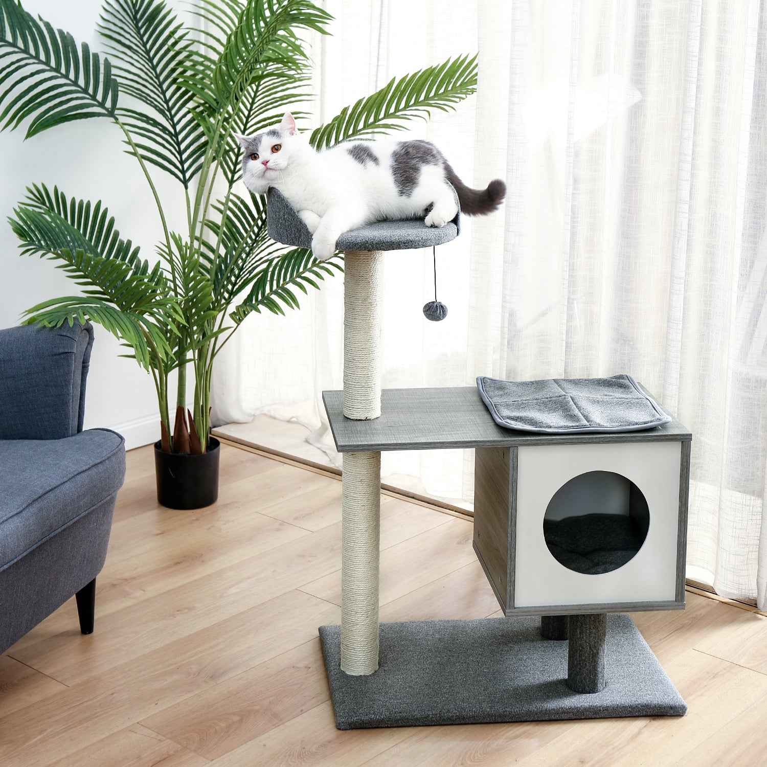 - SISAL-COVERED SCRATCHING POSTS: Natural sisal rope, which is scratchable and durable, fully wrapping on 2 strong scratching posts provide plenty of scratching zone to allow nail scratching and help keep claws healthy. Sisal-covered posts will give your cats a feeling like scratching on tree bark. So your cats will stop to ruin your furniture once you bring this cat tree to home.