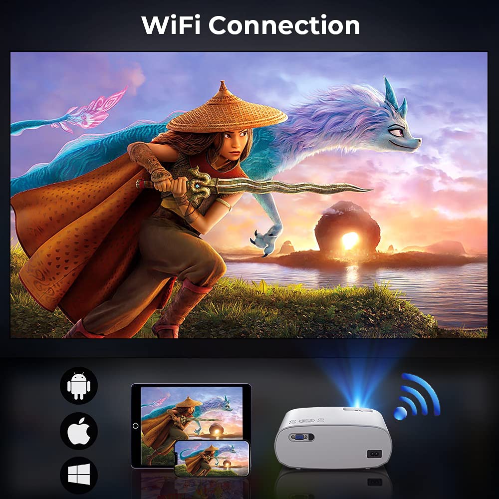 WiFi Bluetooth Projector, UWR-Nite Native 1080P Video Projectors with Dust Filter & Sleep Timer, 4K Supported Portable Outdoor Movie Projector for Phone/iPhone/Android, Carry Bag Included.