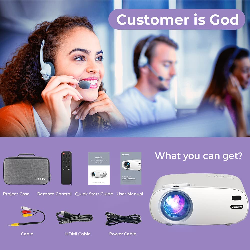 - 【80,000H Lamp Life and Service】: Our portable 1080P projector has 2 independent smart speed adjustable fans, which can adjust the speed in real-time according to the temperature, minimize power consumption, and extend the lamp life to 80,000 hours. Perfect home theater and Gift for family, friends. We offer 6-month repairs and 24-hour lifetime support for technical issues. Note: wifi and Bluetooth not connecting is not a quality issue, any problem please feel free to contact us.